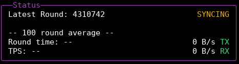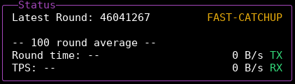 When the process is done, the Fast Catchup status information will disappear and the yellow FAST-CATCHUP status at the top will change to a green RUNNING state.