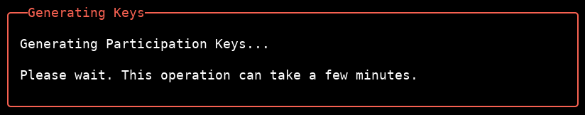 The time required for this step will depend on your participation key duration. As an indicative wait time, a 30-day participation key should take between 4-6 minutes to generate.