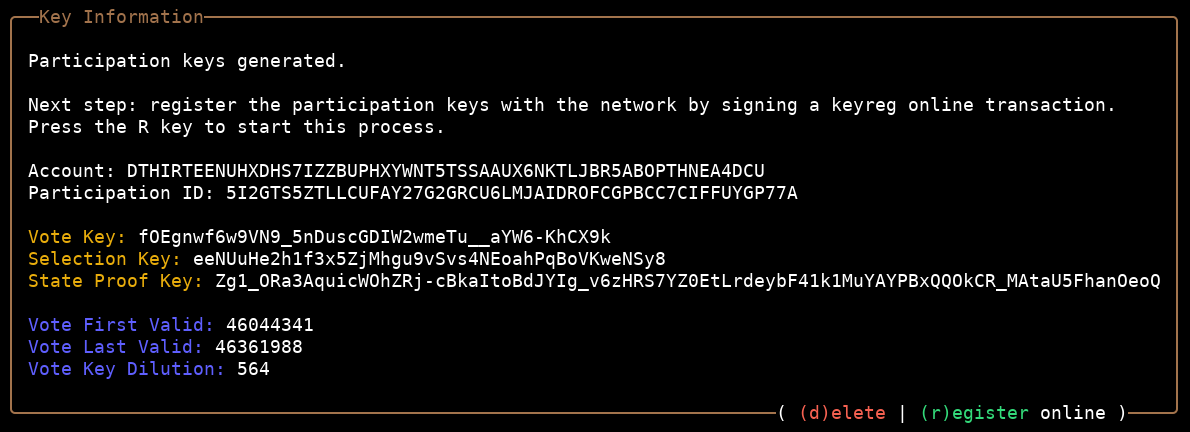 After you have selected your key duration, nodekit will instruct your node to generate participation keys.